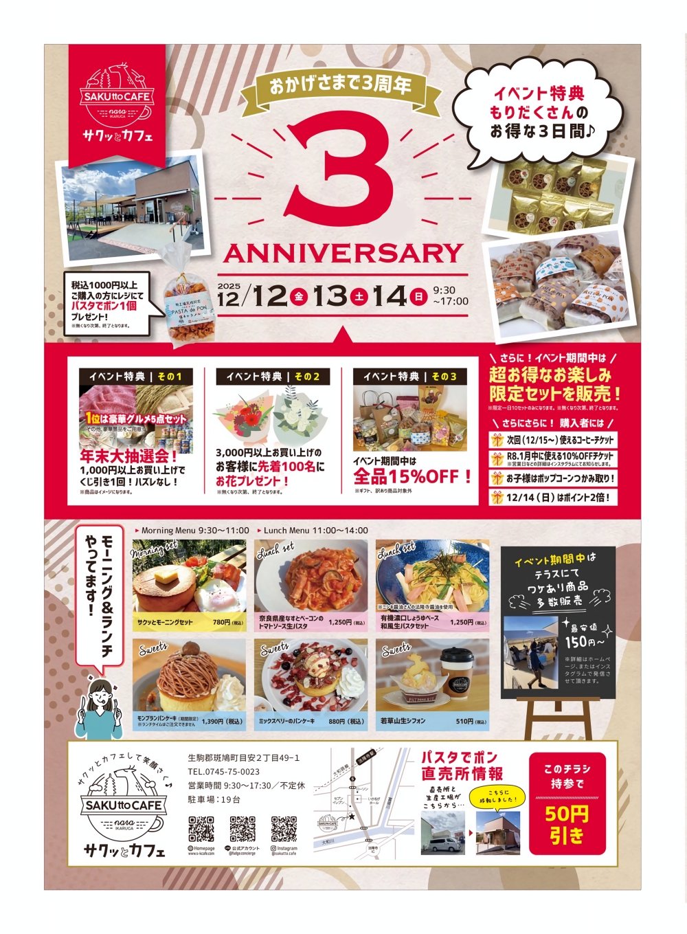 ⚠︎テラスが販売会場になりますので3日間テラス席のご案内ができません。
